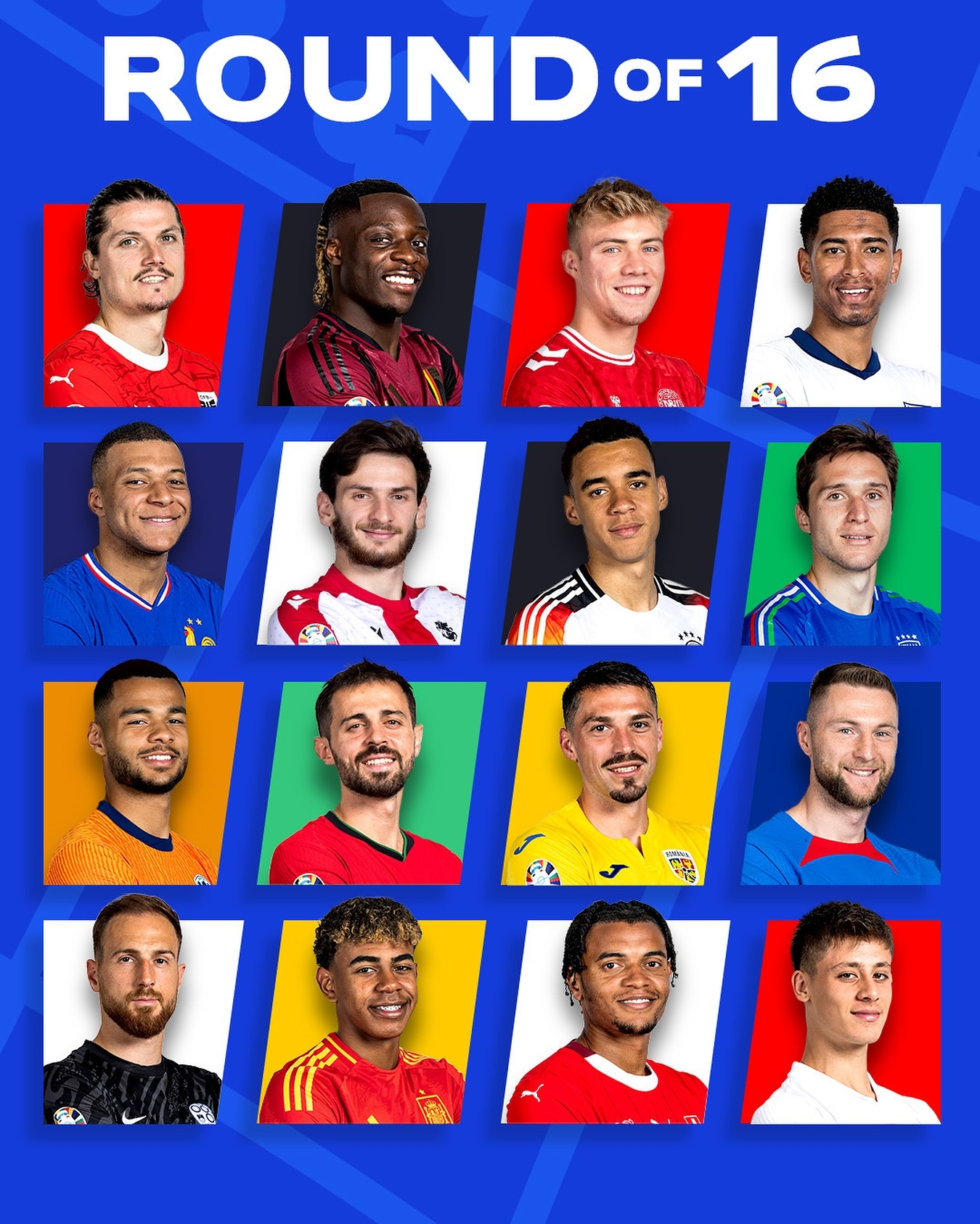 यस्तै, जर्मनीले डेनमार्कविरुद्ध खेल्नेछ । स्पेनले जर्जियासँग प्रतिस्पर्धा गर्नेछ । कतार विश्वकप–२०२२ को उपविजेता र त्यसअघि २०१८ को विश्वकप विजेता फ्रान्सले बेल्जियमविरुद्ध प्रतिस्पर्धा गर्ने भएको छ । नकआउट चरणको सबैभन्दा प्रतिक्षित बनेको यो खेल जुलाई १ मा हुनेछ । यस्तै, प्रि–क्वार्टरफाइनलको अन्तिम खेलमा पोर्चुगलले स्लोभेनियाविरुद्ध खेल्ने तालिका छ ।