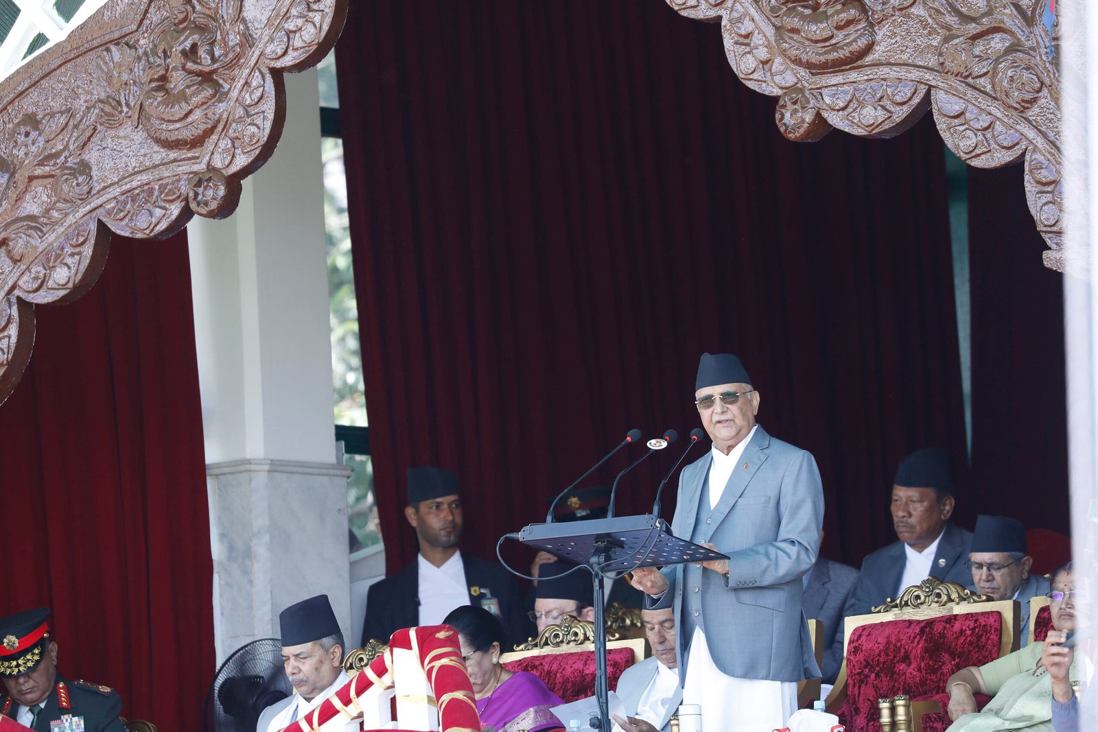 गणतन्त्र दिवसका २०८२ को उपलक्ष्यमा टुडिँखेलमा ओयोजित विशेष समाराहलाई सम्बोधन गर्नुहुँदै प्रधानमन्त्री ओलीले हरेक नागरिकको आत्मससम्मान सुरक्षित रहने गणतन्त्रान्त्रिक व्यवस्थाको विकल्प अरु हुननसक्ने बताउनुभयो । गणतान्त्रिक शासन व्यवस्थामा शिक्षा, स्वास्थ्य, उद्यम, रोजगारी पूर्वाधारलगायतका क्षेत्रमा अतुलनीय उपलब्धिसहित परिवर्तन भएको उल्लेख गर्दै उहाँले गणतन्त्रलाई अझ सुदृढ र बलियो बनाउन हामी सबै एक हुनुपर्नेमा जोड दिनुभयो ।