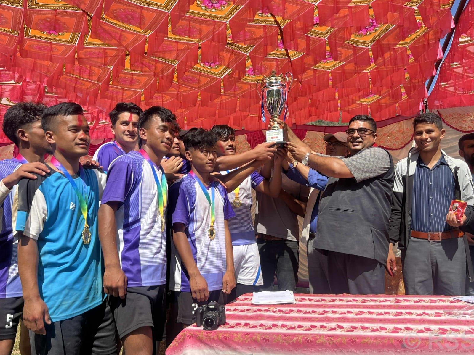 प्रथम हुने टोलीले नगद रु ७५ हजार, दोस्रोले रु ५५ हजार, तेस्रोले रु ३५ हजार र सान्त्वना हुने टोलीले रु १५ हजार, शिल्ड र प्रमाणपत्र प्राप्त गरेको छ । विजेता टोलीलाई गाउँपालिका उपाध्यक्ष ज्वालाप्रसाद न्यौपानले पुरस्कार एवं प्रमाणपत्र प्रदान गर्नुभयो ।