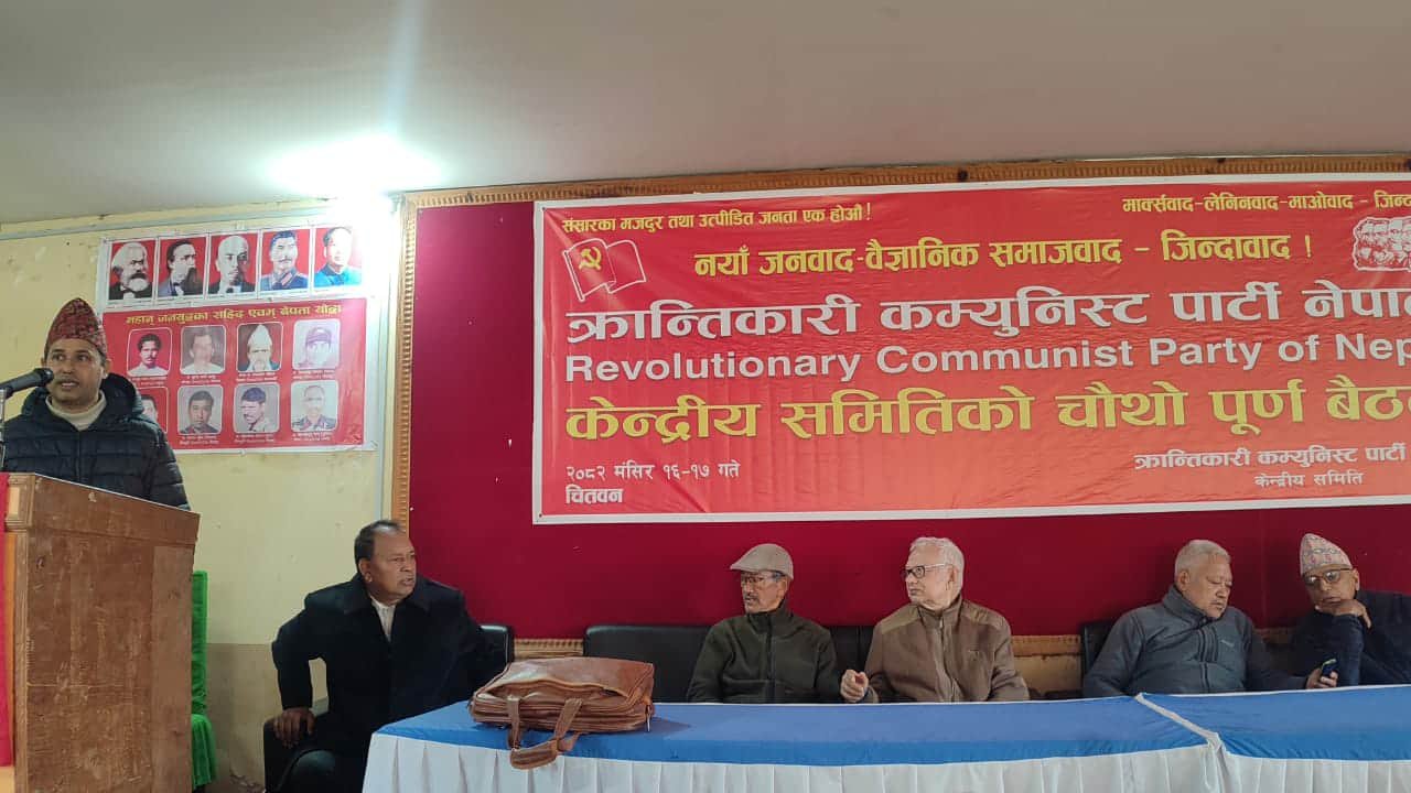पार्टीका महासचिव सीपी गजुरेलको अध्यक्षतामा मंगलबार र बुधबार भरतपुरमा बसेको चौथो पूर्ण बैठकले जेनजी विद्रोहपछि अमेरिकी साम्राज्यवाद र भारतीय विस्तारवादको सहमतिमा कार्की नेतृत्वको सरकार गठन भएको निष्कर्ष निकालेको छ । बैठकले निर्वाचन बहिष्कार गर्दै सत्ता र व्यवस्थाको भण्डाफोर गर्ने नीति तय गरेको छ । त्यस्तै पार्टीले निर्वाचन बहिष्कारका कार्यक्रम अगाडि बढाउने पनि निर्णय गरेको पत्रकार सम्मेलनमा बितरित प्रेस विज्ञप्तिमा जनाइएको छ ।