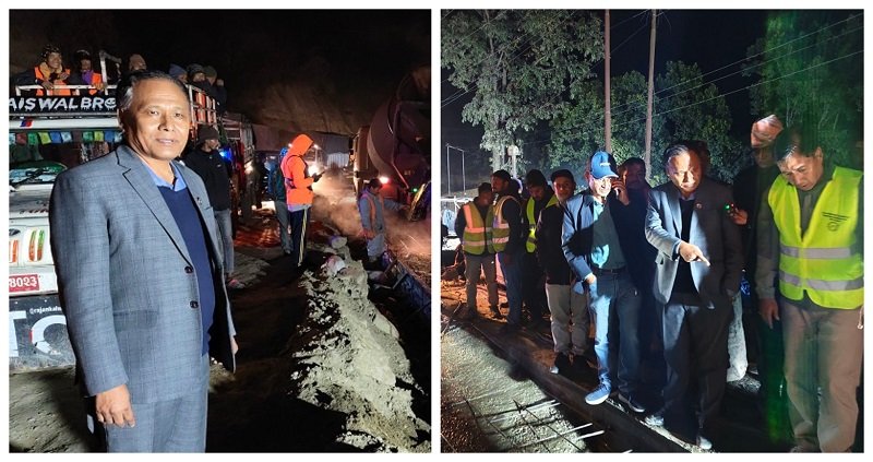 दाउन्ने सडक खण्डमा मन्त्री घिसिङको रात्रि अनुगमनः निर्माण कार्य तीब्र बनाउन निर्देशन