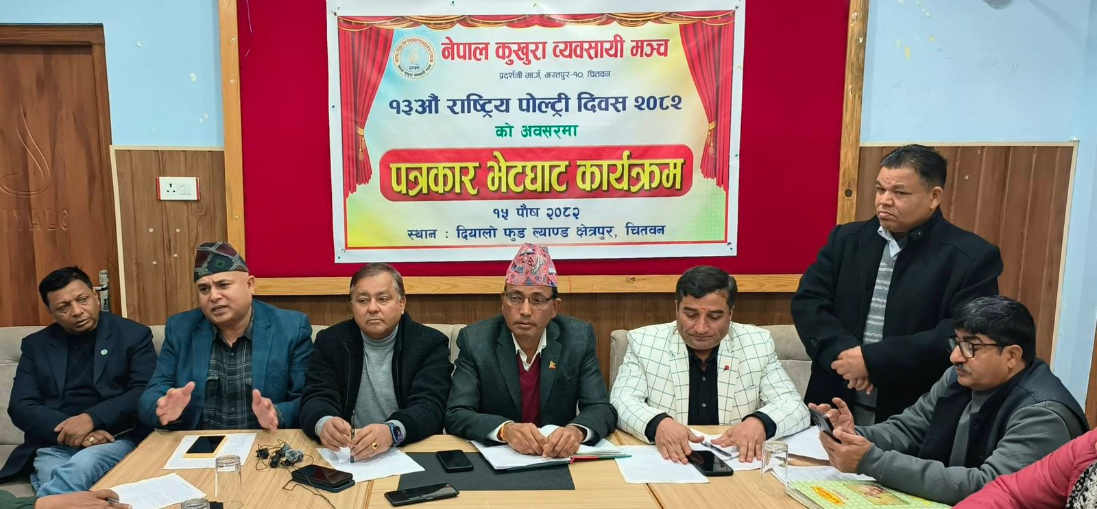 चितवनलाई केन्द्र मानेर प्रत्येक बर्ष राष्ट्रिय पोल्ट्री दिवस मनाउने गरिएको नेपाल कुखुरा व्यवसायी मञ्चका अध्यक्ष रघुनाथ भट्टले जानकारी दिनुभयो । उहाँका अनुसार दिवसको अवसरमा बिहिबार प्रभातफेरीको आयोजना गरिएको छ । मञ्चको कार्यालय परिसरबाट बाजागाजा र प्लेकार्ड ,झाकी सहित प्रभातफेरी गरी चौबिसकोठी,हाकिमचोक,स्याउलीबजार परिक्रमा गरी चितवन औधोगिक प्रर्दशनीमा जम्मा भई समापन गरिने भट्टले बताउनुभयो ।