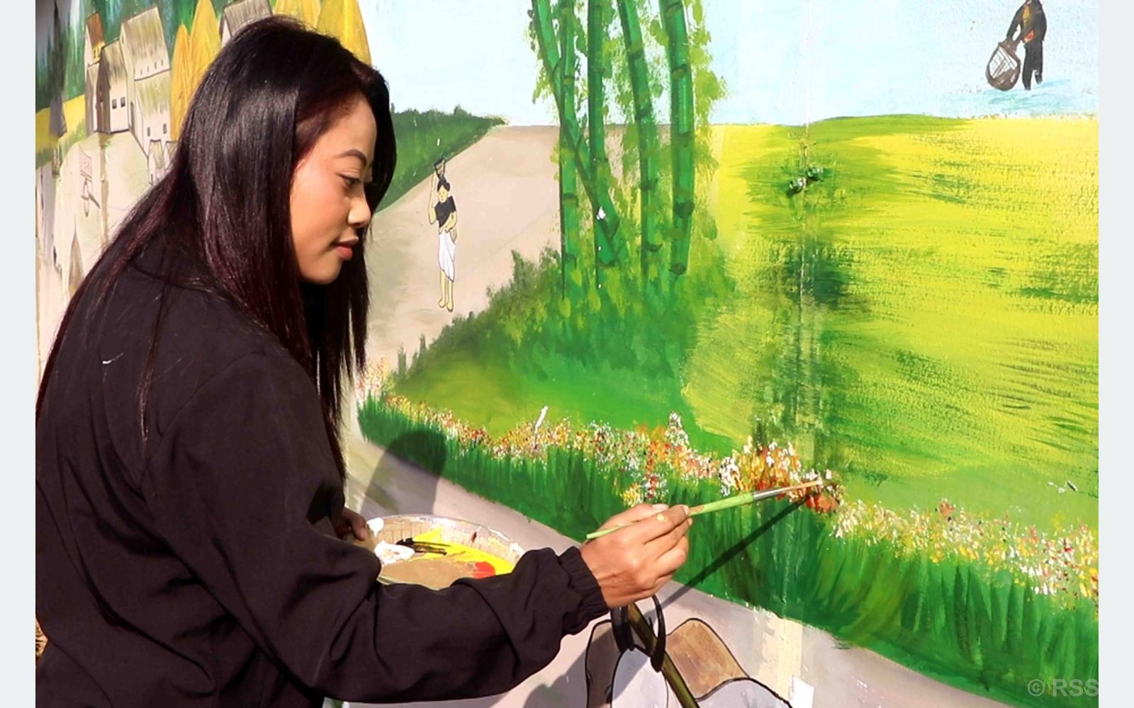 खैरहनीको खिचरा महोत्सवस्थलमा पुग्दा एउटा पर्खालले धेरै दर्शकलाई केहीबेर रोक्छ । रङरेखाले सजिएको त्यो पर्खाल कुनै साधारण ‘वाल’ पेन्टिङ होइन, त्यो थारु समुदायको इतिहास, संस्कृति र जीवनशैली बोलिरहेको क्यानभास हो । चितवनको राप्ती नगरपालिका–६ बेल्डियाकी कलाकार सोमिना चौधरीले त्यो क्यानभासमा वास्तविकता भर्नुभएको हो ।
