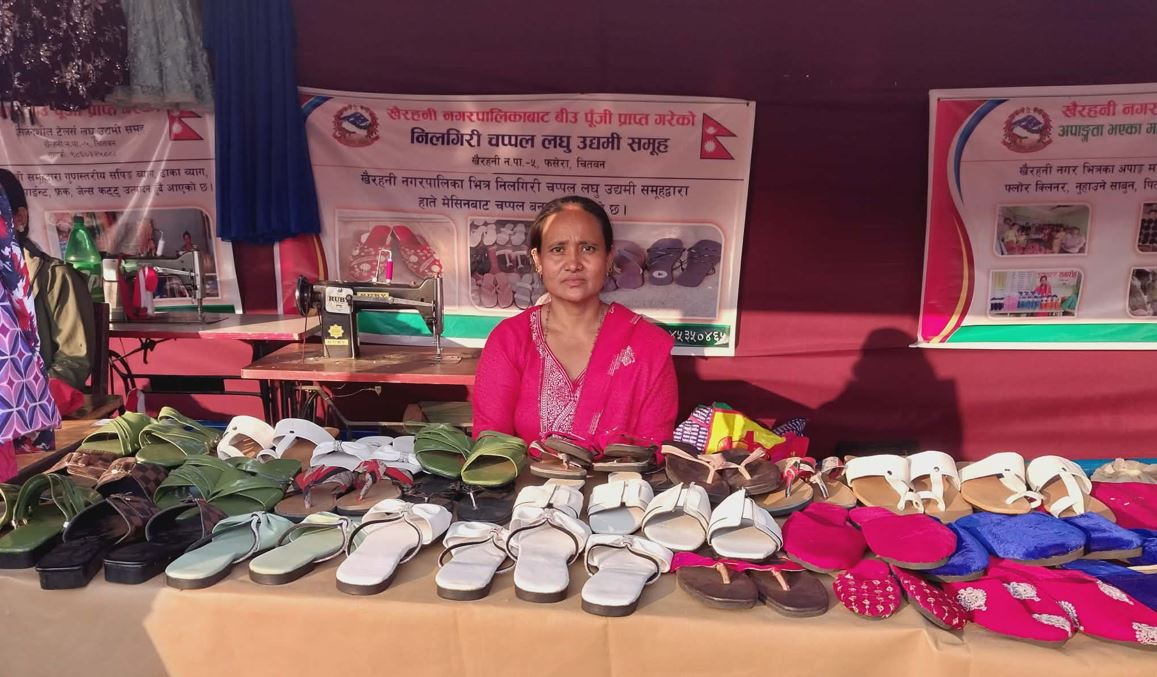 खैरहनी–५, फसेरा निवासी मुना चौधरीले चार वर्षअघि खैरहनी नगरपालिकाले आयोजना गरेको चप्पल बनाउने तालिममा सहभागिता जनाइन्। उनीसँगै १५ जनाले आधारभूत तथा एडभान्स तालिम लिएका थिए। तालिमपछि नगरपालिकाले मेशिन, आवश्यक कच्चा पदार्थ र आर्थिक सहयोग उपलब्ध गराएपछि १० जना मिलेर निलगिरी चप्पल लघु उद्यमी समूह स्थापना गरी हाल व्यावसायिक रूपमा चप्पल उत्पादन गरिरहेका छन्।