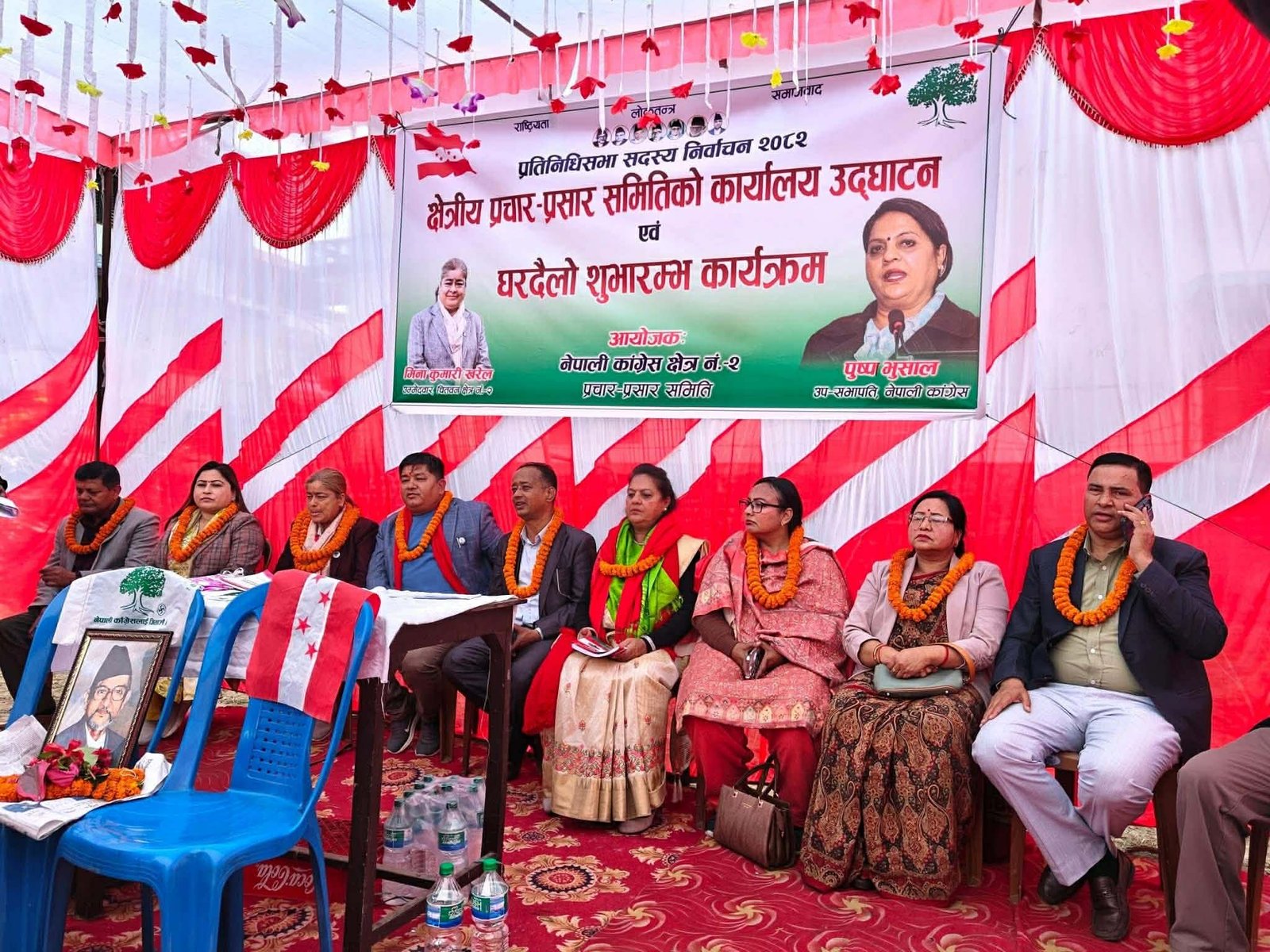 चितवन – प्रतिनिधिसभा सदस्य निर्वाचन २०८२ लाई लक्षित गर्दै नेपाली कांग्रेस चितवन क्षेत्र नम्बर–२ ले चुनावी अभियानलाई औपचारिक रूपमा तीव्र बनाएको छ। आज (सोमबार) केन्द्रीय उप–सभापति पुष्पा भुसालद्वारा क्षेत्रीय प्रचार–प्रसार समितिको कार्यालयको उद्घाटन गरिएको हो । कार्यालय उद्घाटनसँगै पार्टीले औपचारिक रूपमा घरदैलो कार्यक्रमको पनि शुभारम्भ गरेको छ।