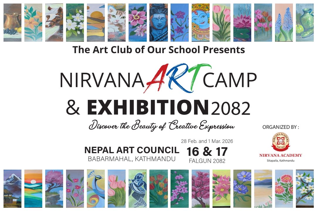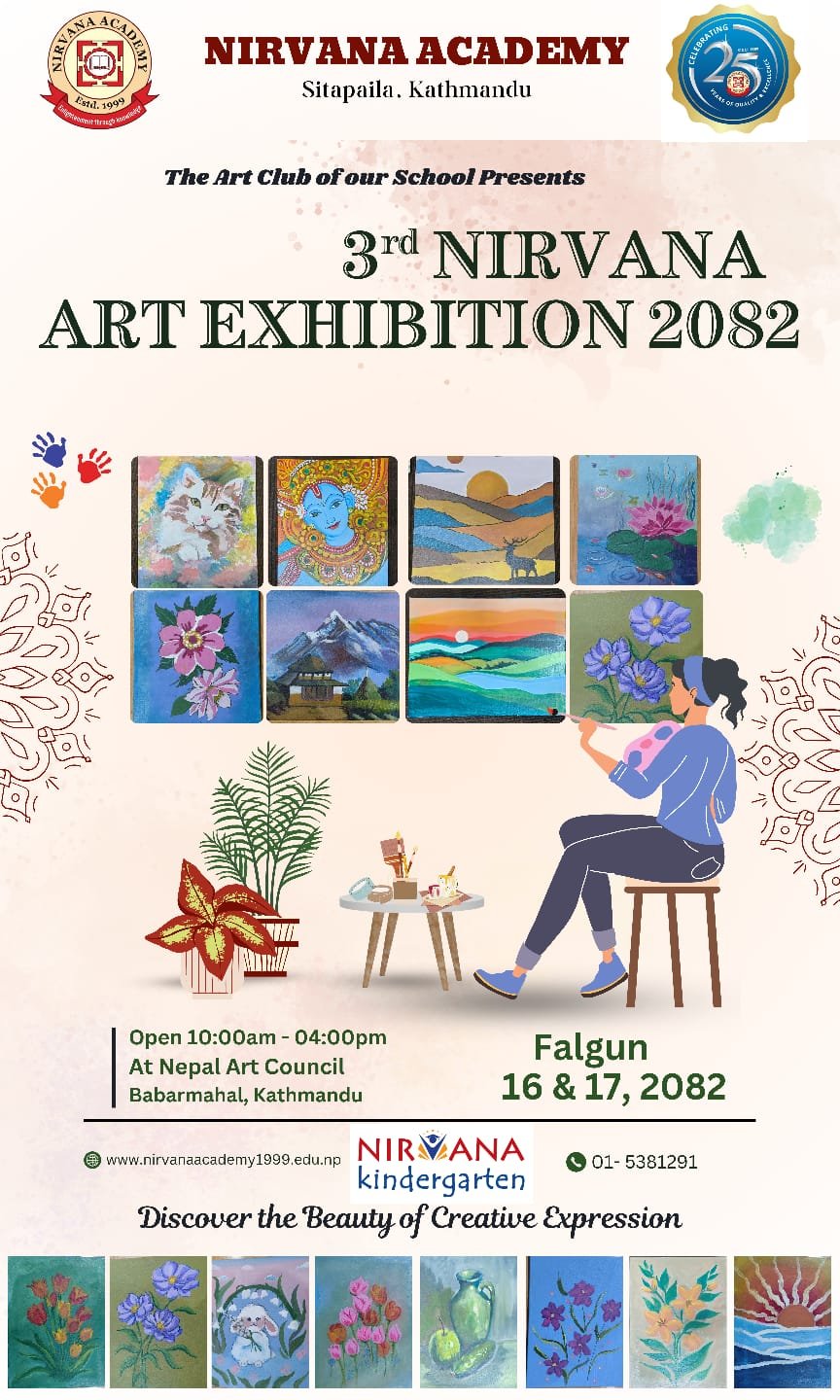 निर्भाणा एकेडेमीको आयोजनामा तेस्रो निर्भाणा कला प्रदर्शनी २०८२ नेपाल आर्ट काउन्सिल, बबरमहल काठमाडौंमा भव्य रूपमा सुरु भएको छ । फाल्गुन १६ र १७ गते बिहान १० बजेदेखि अपराह्न ४ बजेसम्म सञ्चालन हुने यस प्रदर्शनीमा विद्यार्थीहरूद्वारा सृजित कलाकृतिको अवलोकन गर्न पाइने छ ।