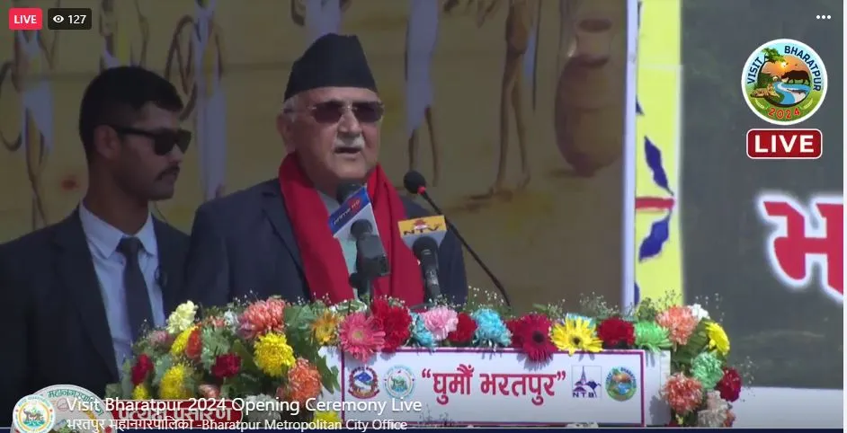 भरतपुर: नेपाल कम्युनिष्ट पार्टी एमालेका अध्यक्ष तथा पूर्वप्रधानमन्त्री केपी शर्मा ओलीले भरतपुर पर्यटन विकासको प्रचुर सम्भावना भएको सहर हो भन्नुभएको छ । भरतपुर भ्रमण वर्ष २०२४ को नारायणी नदी किनारमा आयोजित उद्घाटन समारोहलाई आज सम्बोधन गर्दै अध्यक्ष ओलीले भरतपुर देशका विभिन्न क्षेत्रबाट बसाइँसराइ गरेर आएका र यहाँका आदिवासीको सुन्दर सम्मिश्रणको सहर भएको बताउनुभयो ।